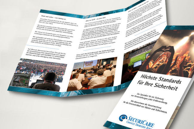 Der Auftrag von Flyern, Foldern oder Broschüren umfasst Konzeption, Entwurf und Ausgestaltung des Layouts, Bildbearbeitung, Typografie und Satz, sowie die Druckdatenerstellung und die Betreuung des Druckauftrages. Und keine Sorge – um den Text und die komplette Produktion kümmern wir uns bei Bedarf ebenfalls gerne. Wie wir in einem ausführlicheren Gespräch Inhalte, Struktur und Gestaltungsziele festlegen, erfahren Sie am besten persönlich.